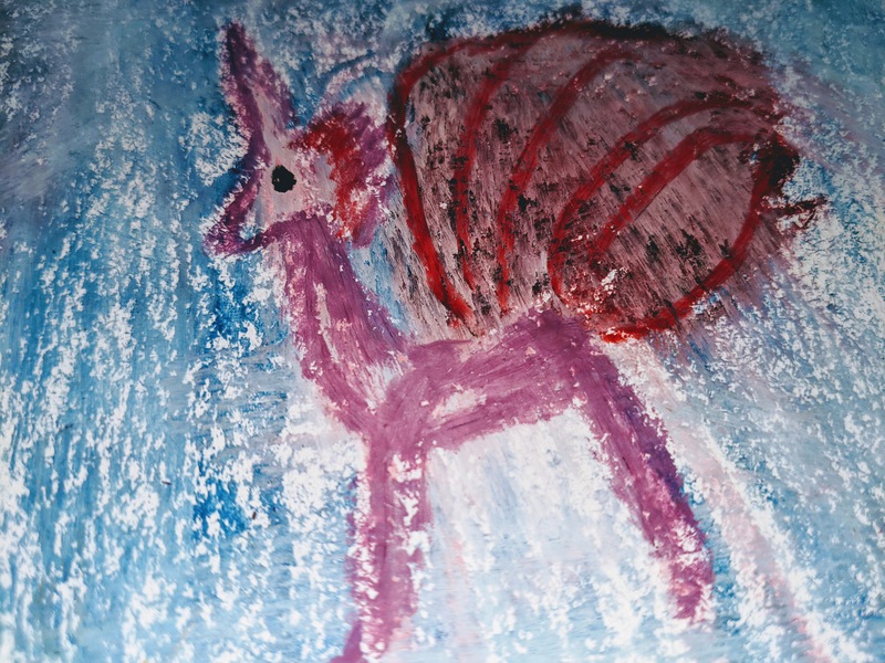 Students used a block drawing method where they started with a single shape and grew their ideas from that center shape. They did not pre-draw these. Students then created blended backgrounds. Students often chose to create contrast using warm and cool colors. They used their hearts and imaginations to create a bit of visual magic! They referenced Marc Chagall, Vincent van Gogh, Henri Rousseau. And if you are surprised to see a lot of chickens in the young artists' works, just know that Marc Chagall loved chickens too.