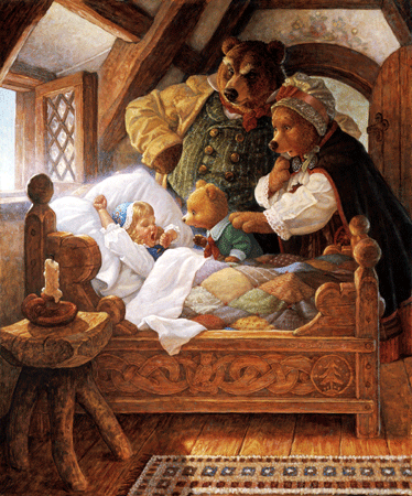 I have my kindergarteners enter our artist cafe quietly and calmly and sit them down on the carpet close to me where we can look at art works, have discussions, and share stories. For this lesson I have chosen Annie Ferris's photo image, "Hunderwasser's House," and Scott Gustafson's, "Goldilocks." We then talk about what we see, what we think, and what we wonder. I share the story,"Goldilocks and the Three Bears," by Jan Brett. As this lesson is for four weeks, then each week we review the 2 art images, and I read other books from my list below. This builds their knowledge and understanding about houses and how art is involved in creating those dwellings.