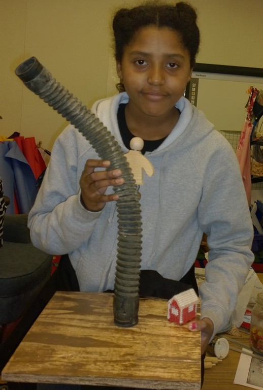 The fourth graders were responsible enough to learn how to use the hot glue gun, wire cutters, pliers, hammers, screw drivers and the staple gun. A few projects due to their weight needed extra drilling and bolting; Mr. Schellenberg lovingly did that for us too.